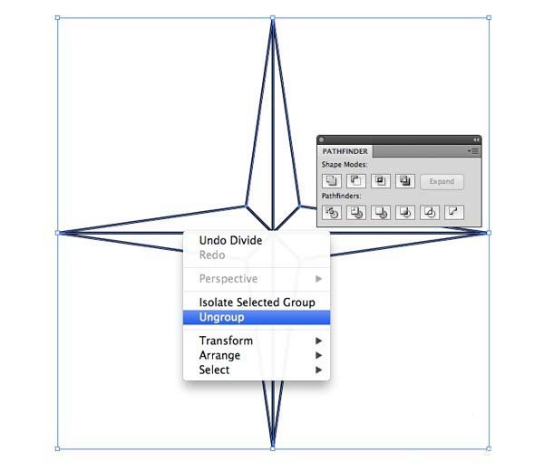 4、周围绘制的所有对象的选择,然后从探路者调色板的鸿沟选项。右键单击并取消组合的元素,直到每一个造型是单独选择。