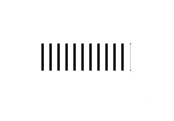 10、其他地方在画板上画了1PT中风的小竖线。按住Alt和Shift键并拖动一个重复关闭该网站。重复按下快捷键CMD + D以“再次变换”,形成了一系列均匀间隔的线。从最后一行中取出行程留下赤裸裸的路径。