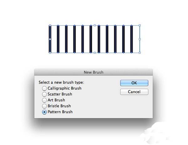 11、周围画了一系列的线的选择,然后单击“新建”图标,画笔调板底部。选择图案画笔的选项。