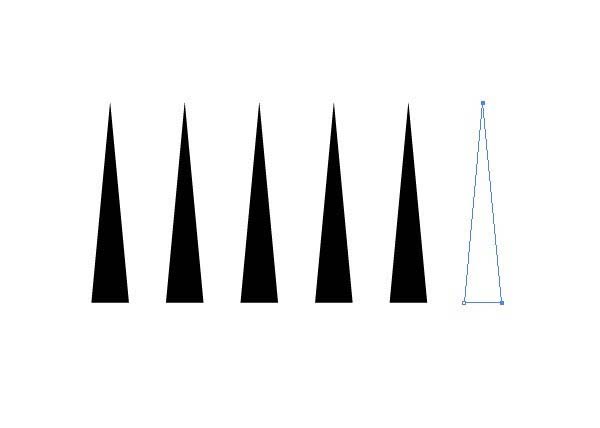 14、创造了一系列采用按住Alt键,CMD + D技术均匀分布的三角形。选择最后一个三角形的顶部和右侧点,创造新的图案画笔之前删除它们。离开这个空点允许刷模式重复使用均匀间距。