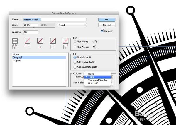 20、双击在画笔调板中的自定义模式进行属性修改。改变上色方法,以浅色调,让笔触颜色来改变图案的颜色。这将允许您重叠在黑色圆圈白色的图案,在细节增添更多的变化。