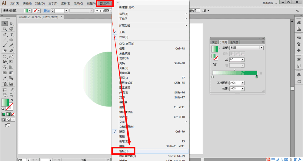 6、此时,我们点击菜单栏的窗口——色板,调用出色板面板