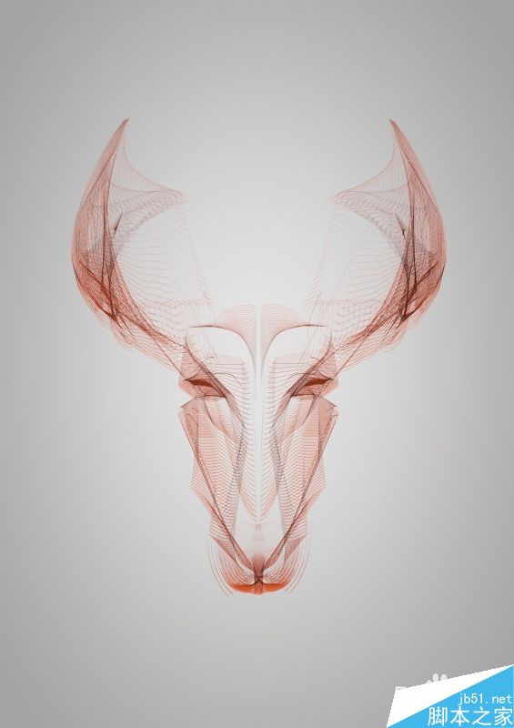 5、这个步骤是最简单的。选择你的脸,犄角,复制它们,然后反映拷贝水平创造脸部的另一半。要创建你看到对面的艺术品,我复制并粘贴到一切Photoshop中作为智能对象,添加了一个灰色的背景,一个小插曲和调整颜色,以获得最终结果。