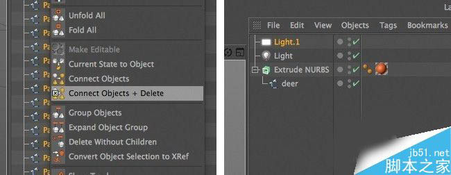 6、虽然我们的作品既简单又漂亮,你可以创造的东西,如果你喜欢更加动感(你有四维影院)。保存deer-horns1.ai作为一个插画8个文件,因此它可以在4D影院开幕。当您在4D影院中打开它,你会看到一个空的对象,所有的线花键。全部选中,然后右击>连接对象+删除。这将创造从所有的花键的单个对象。将它命名为“鹿”。创建拉伸NURBS对象(创建> NURBS>拉伸NURBS),然后将'鹿'对象里面。把你自己的选择,它的质地 - 将反射来增强渲染时它的外观 - 和一些灯。玩弄灯光的位置,直到找到给深度的真实的感觉没有铺天盖地的网孔的几何感的反射角度。
