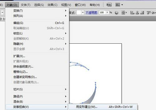 2、我们先是要打开对象这一个菜单栏,之后在里面我们打开封套扭曲之后在打开变形建立或者是直接快捷键Alt+Shift+Crtl+W