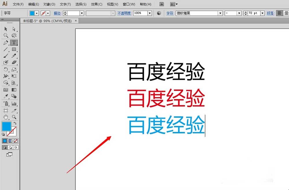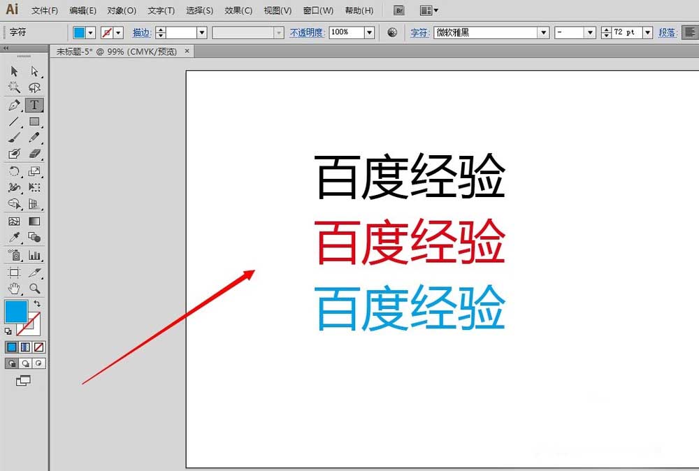 1、在新建的画布上打入三行的文字,举个简单的例子,如图所示,现在的问题是想把这三行的文字打散,变成单独的一个个的字