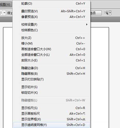 2、我们可以在视图中直接找到显示透明度网格的选项,这个就是开启的选项了