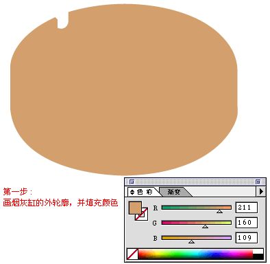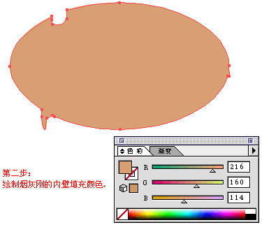 花烟灰缸的外轮廓并填充颜色,如下图所示;