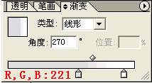 3、点击确定后,会出现一个圆角矩形,在外观面板中选择笔画,在颜色面板中设置笔画的颜色为:R:115,G:115,B:115,在外观面板中选择填充,在工具条底部选择填充类型为渐变,在渐变面板中作如下设置: