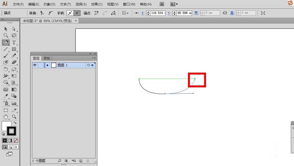 8、两头的节点可以拉长或者缩短,长短不一样,弧度也会不一样