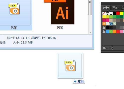 4、所以只要在Illustrator中先新建文档,再拖动PSD文件或者JPG图片进去就不会改变色板了。