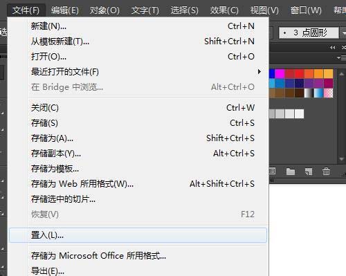 7、在Illustrator中单击,选择置入位置,看不会影响到色板。