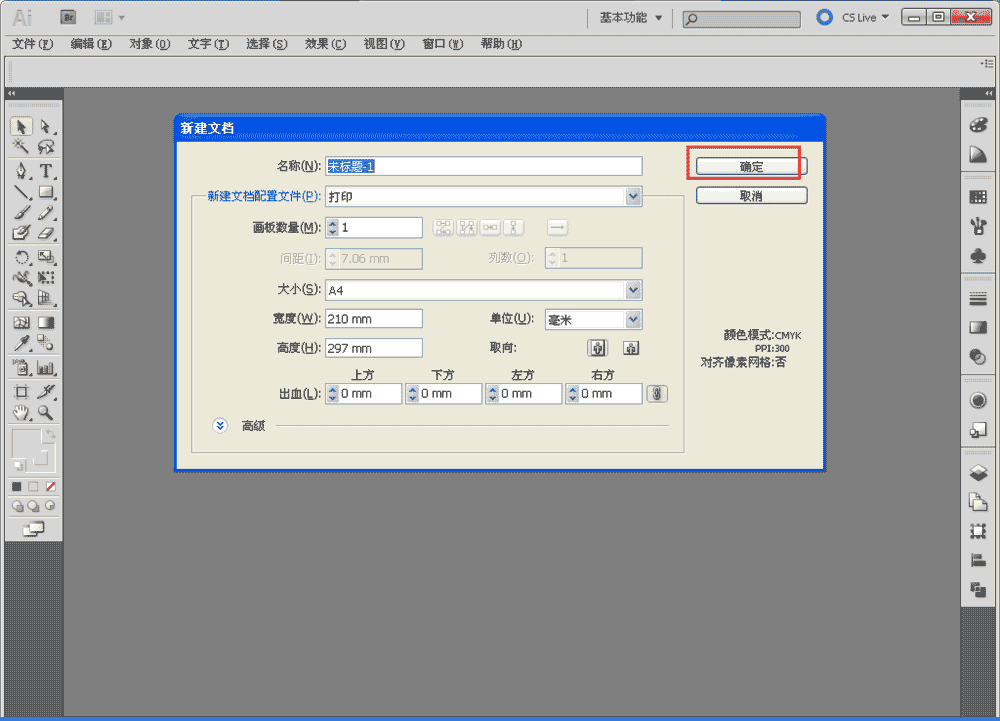 4、进入新建文件对话框,一般不需更改直接点击确定。