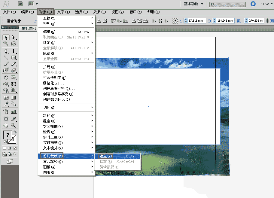 9、选择两个对象以后如图,对象-剪切蒙版-建立。