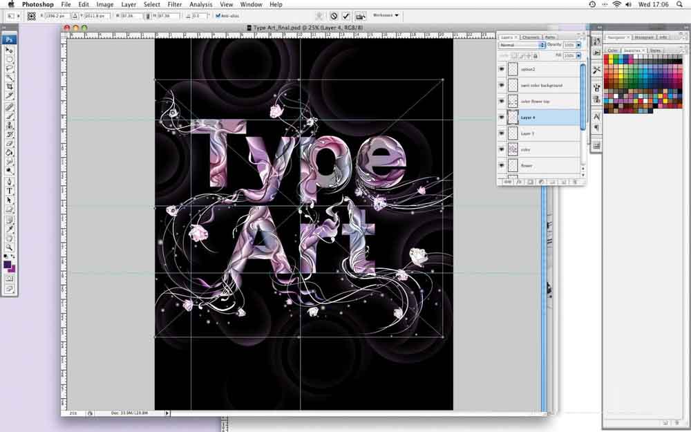 10、打开Photoshop,创建一个新A4的艺术品在RGB 300dpi的,然后粘贴每层从Illustrator文件。智能对象是方便,但我更喜欢在像素粘贴,这样我可以删除或清理位在Photoshop。
