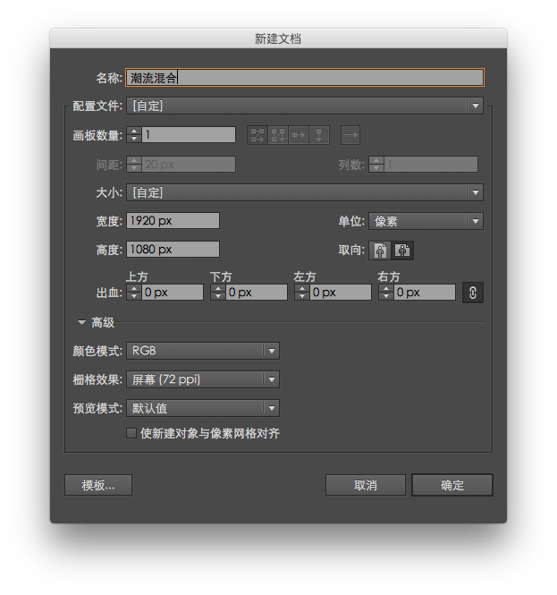 在Ai中新建一个1920*1080px的画布