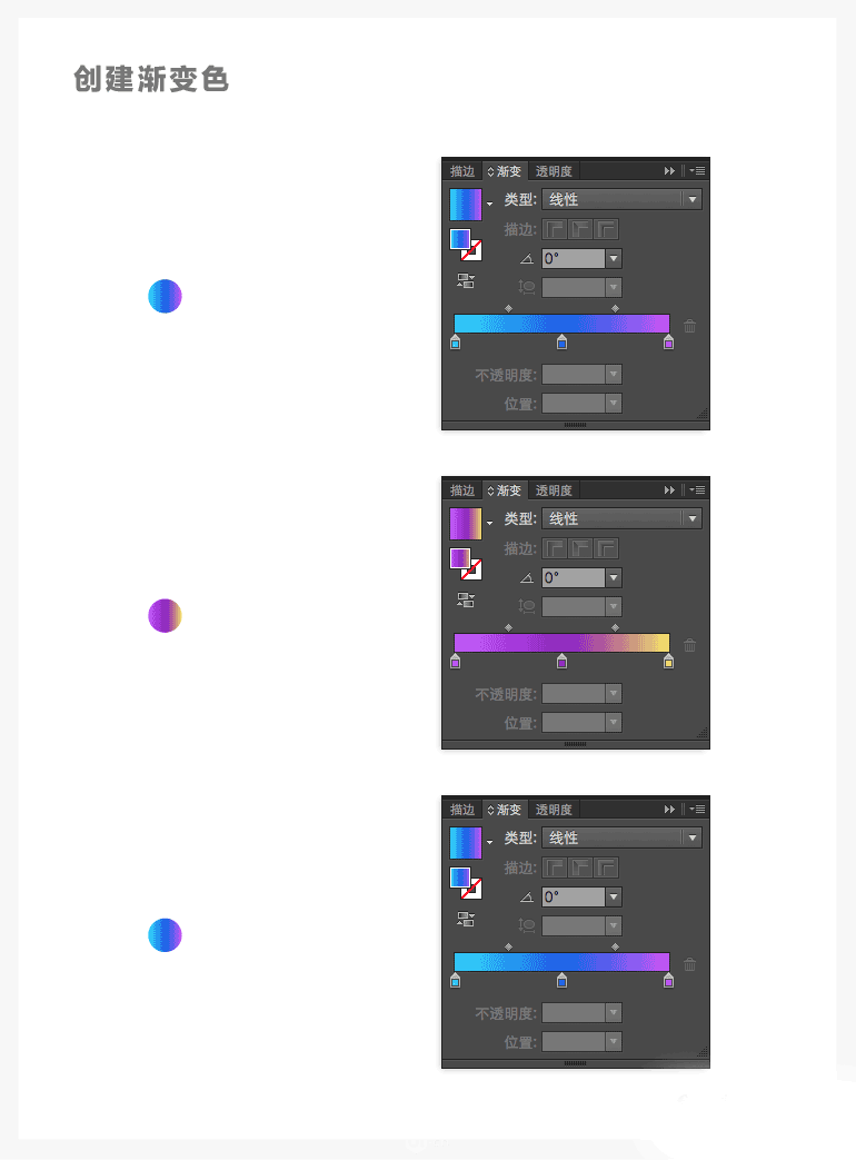第三个圆形三色渐变的色值直接使用 "吸管工具:I"