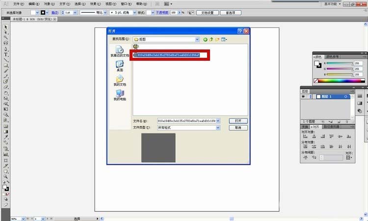 1、在AI软件中选择打开选项。使用打开选项的好处在于,它在处理之后不受限于图片是否还存在。