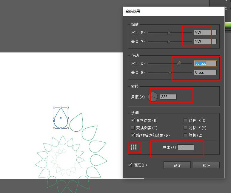 3、然后选中水滴,使用下图的参数,这个参数数值不一样,出来的效果也是不一样的。可以在实际操作的时候试试看,并且勾选预览来确定最终想要的样子。