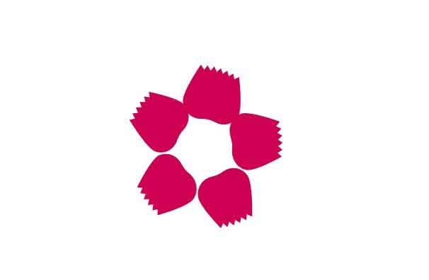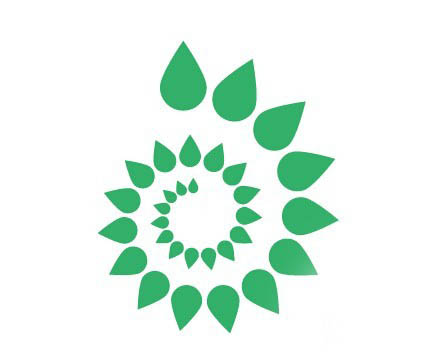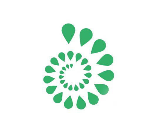 4、完成以后填充一下颜色就是下面这个样子,不过还没完成,选择水滴,将其旋转一下。可以发现,旋转一个水滴,其它的也跟着旋转了,水滴的尖角全部朝向了里面。