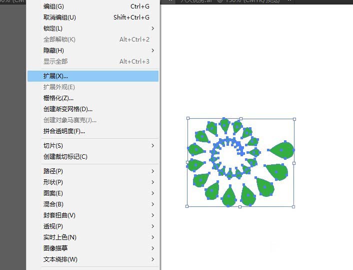 5、然后我们再进一步做处理,想要将这个图形填充渐变色。直接填充不好填,只有一个个选取进行填充。先要将它扩展一下否则不能一个一个地填。