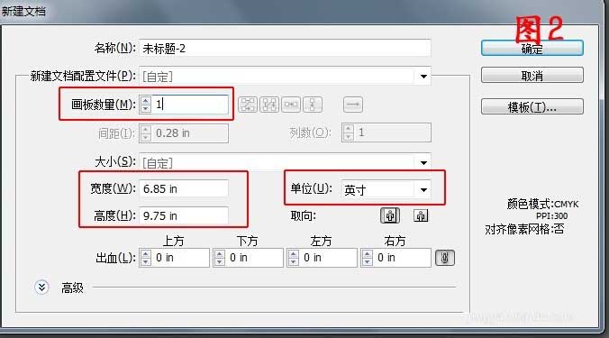 2、下边咱们就来实现它,首先当然是新建一个文档了,大小可以根据自己需要进行设置,如图2所示。“画板数量”的意思是设置几个画板,就像纸张一样,咱们这里选择一张就可以了,然后设置一下画板的宽度、高度等,因为是练习,咱们这里就不设置出血的位置了。