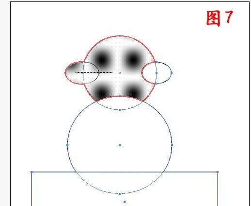 8、右侧小椭圆也是,向大的正圆方向拖动,然后会发现他们组合为一个图形了,然后再用同样方法拖动鼠标到下边的大椭圆,使之成为一个图形,如图8所示为效果。