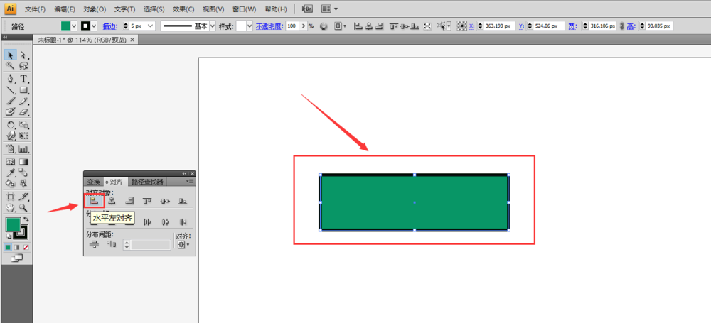6、接下来,选中我们要对齐的对象,然后点击对齐面板中的“水平左对齐”图标,如下图所示