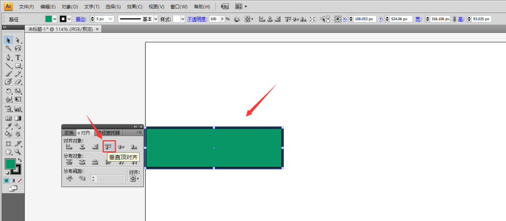 7、下图已经可以看到对象与画板左对齐了,再接下来,点击对齐面板中的“垂直顶对齐”图标,如下图所示
