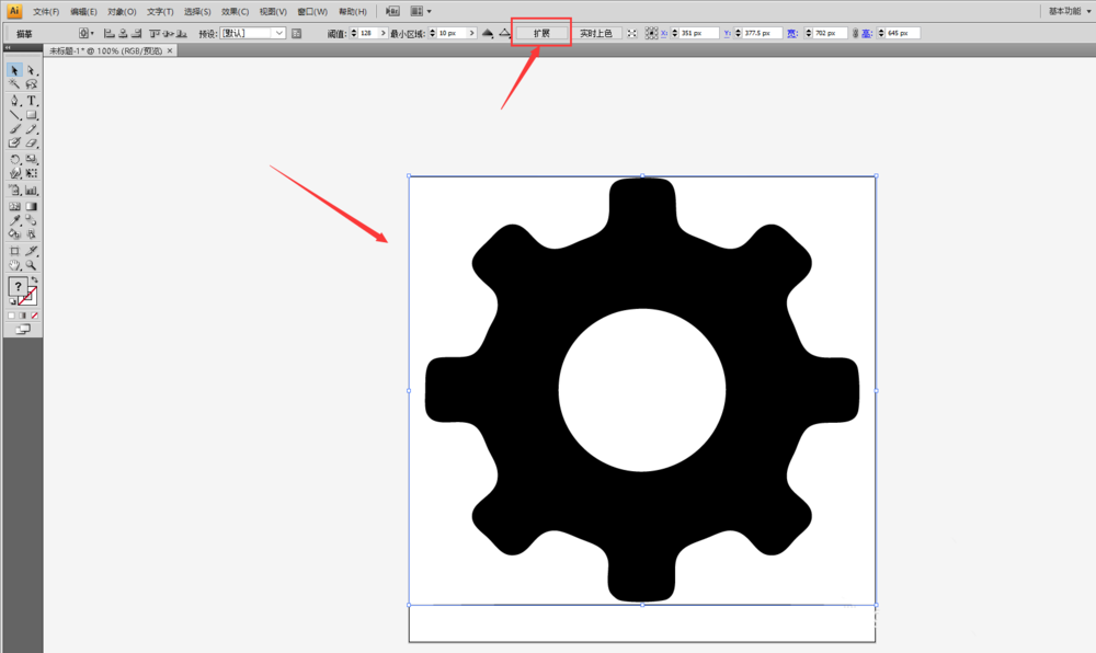 1、选中对象,点击菜单栏下面的“实时描摹”按钮,如下图所示