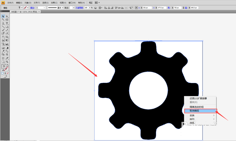 3、在第二步骤的基础上,点击鼠标右键,选择“取消编组”,如下图所示