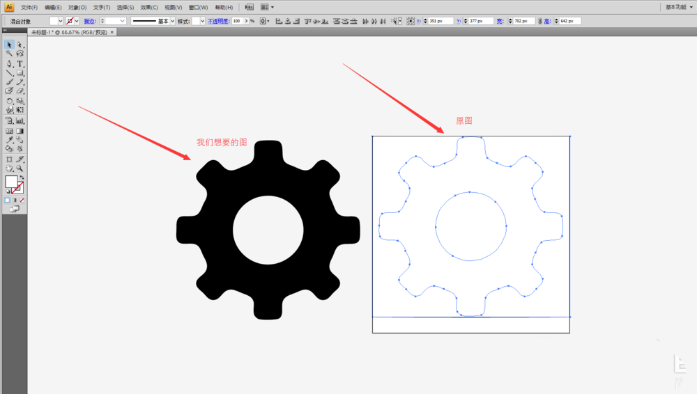 4、在取消编组后,鼠标点击除对象以外的其他任意地方,然后再选中原对象或者我们描摹的对象,然后分开。下图中左边的是描摹出来的,右边的原图。