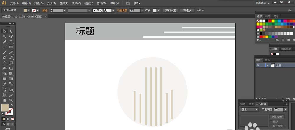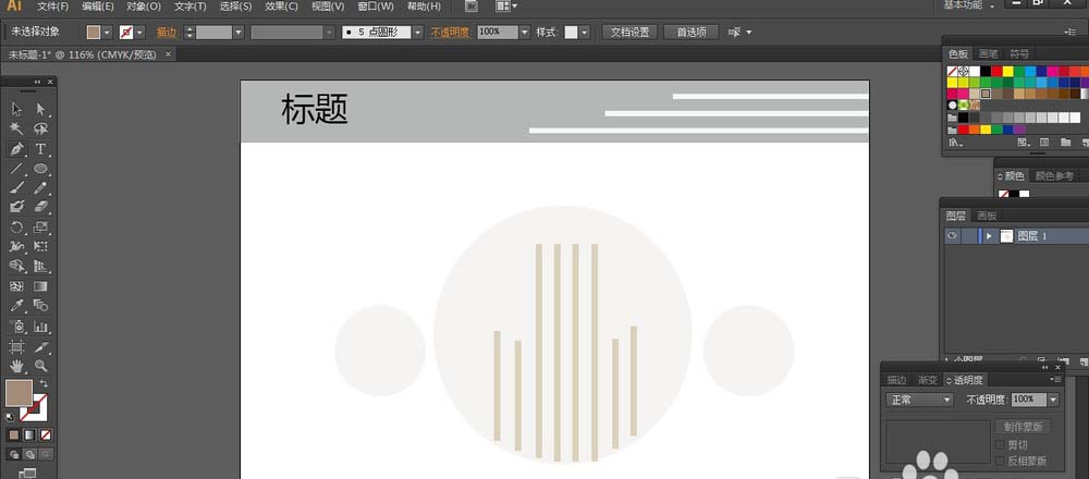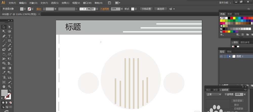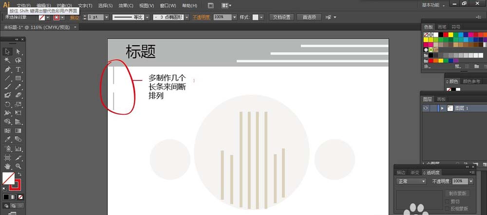 3、在矩形宽里面再进行设计,打上自己想要的标题字(此处用标题代替),然后用矩形工具继续制作一些细小的矩形排列就可以了。