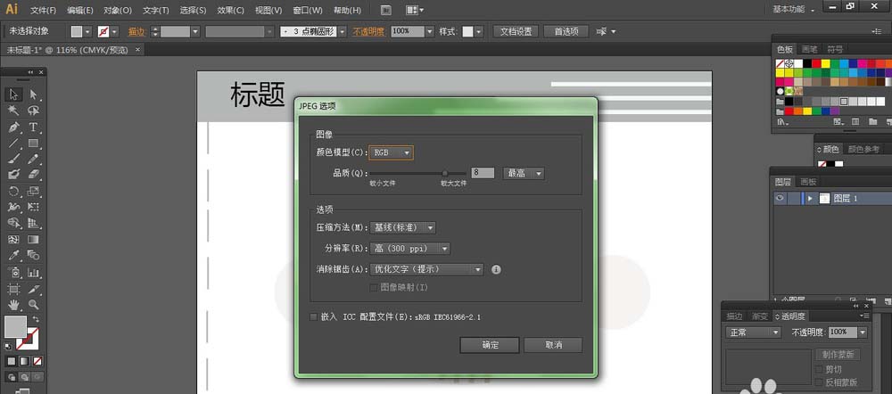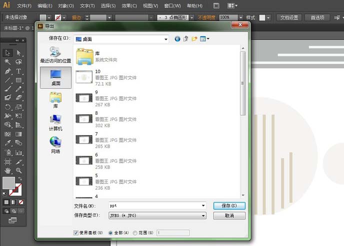 6、ppt完成后,就可以保存使用了。文件选择导出,保存的时要jpeg格式,注意要在"使用画板"上打勾,保存的模式要RGB格式。