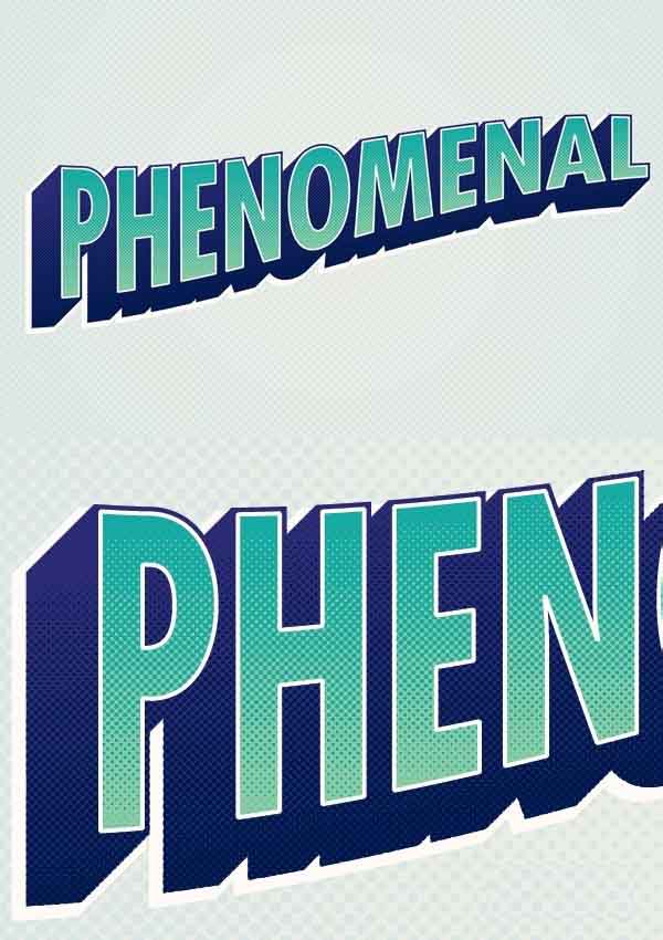 1、我们要创建的文字效果是基于那些复古漫画书封面具有大胆的标题,往往具有较强的轮廓和风格的3D效果。我们的例子中也使用了微妙的半色调图案的颜色添加各种变化和模仿老式的丝网印刷技术的明显的点阵图形。
