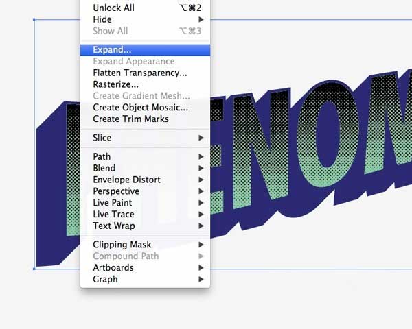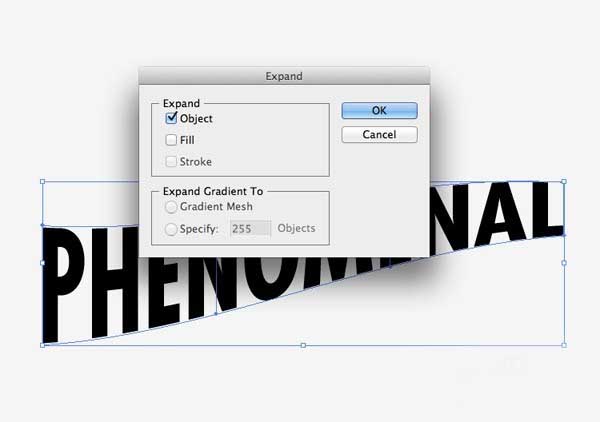 4、我们需要应用此效果永久继续编辑的文本。转到对象>扩展,选择对象的选项。