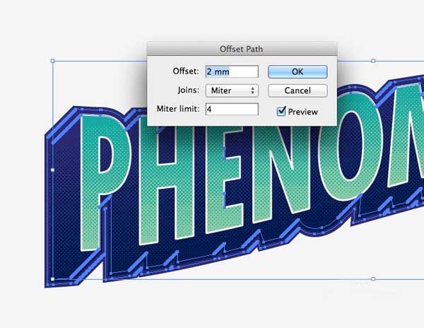 20、再一次选择3D背景区域,然后转到对象>路径>偏移路径。在随后点击确定选项输入2毫米。
