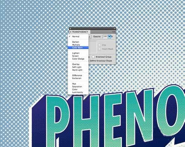 24、给后台的半色调图案的颜色填充,然后改变混合模式为颜色加深,使其能够巧妙地融入背景颜色。