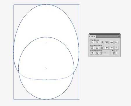 2、另一个重叠椭圆形勾勒的肚子皮毛,然后集中沿Y轴对齐两个形状。