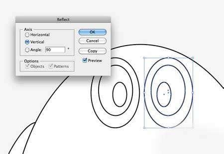 5、复制并粘贴另一翼到画板然后去到对象>变换>反映。定位新的翼在主体的相对侧。