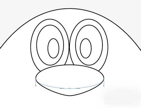 8、用另一种椭圆形的企鹅的喙,但拖到最下点向下调整贝塞尔手柄,使上下层边缘有轻微的点。