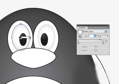 7、创建使用三个不同大小的圆眼睛。偏移瞳孔给企鹅可爱的茫然的样子。复制,粘贴和翻转的眼睛形状的副本,并将其旁边放置的原件。