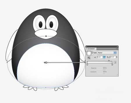 11、使用类似的灰色到白色的渐变的肚子形状。调整此梯度所以下部具有更多的灰色阴影,得到三维的外观。