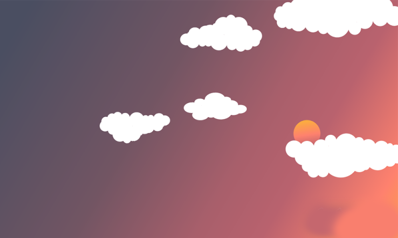 依照步骤04的方法,将其他的云朵也进行填色处理。每种云朵的颜色和明暗都尽量有差别,通过调整渐变的色彩、透明度以及混合模式都可以做出各种简单而轻柔的云彩效果。
