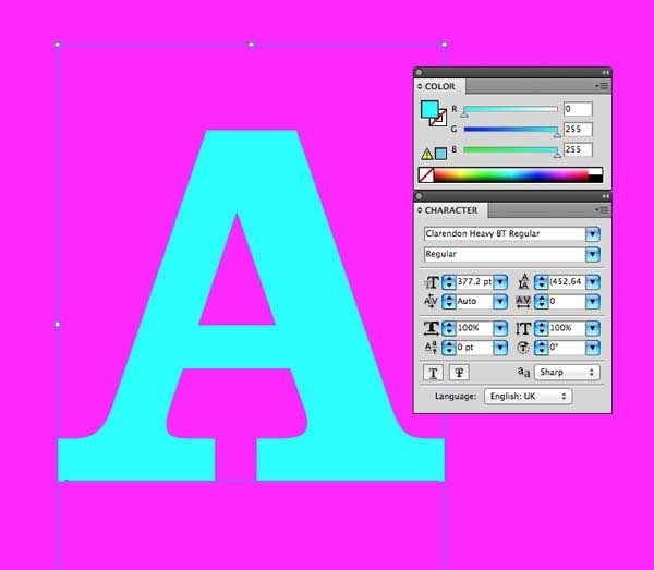 3、绘制一个矩形,整个画板,用鲜艳的品红填充它提供一个背景,这种复古的文字效果的设计。使用文字工具,以信添加到画板。用你喜欢的任何字体,但我会用经典的克拉伦登重。