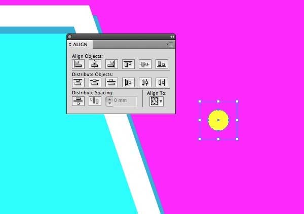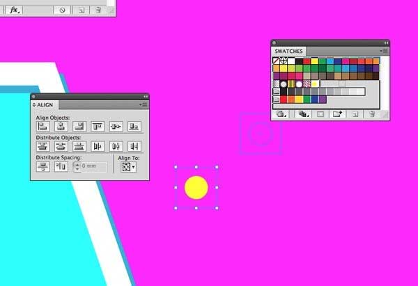 7、其他地方在画板上画小圈充满了黄色。同时周围绘制一个无填充或笔划形状的空方。使用对齐面板集中排列起来沿X轴和Y轴。