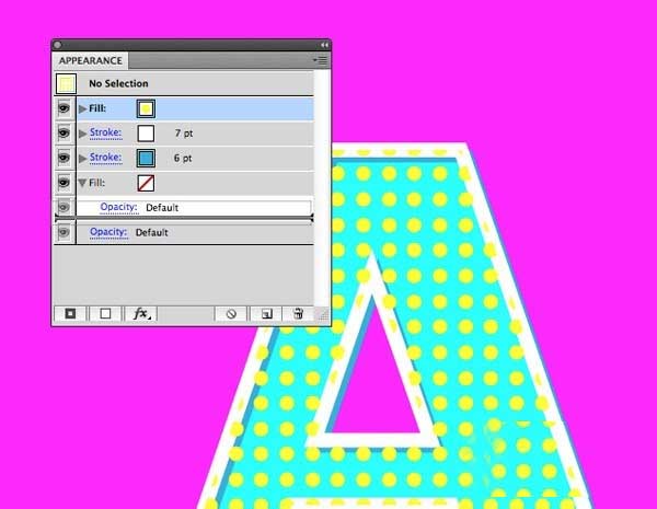 9、申请一个新的填充在外观面板,并选择这个新创建的样本有黄点在元件重复。