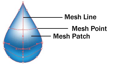 这里是一个快速概述一个渐变网格对象。 可以将颜色应用到网格点和编辑使用方向选择工具来控制网格物体的形状。网格线显示了对象的轮廓。