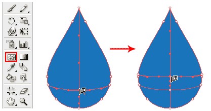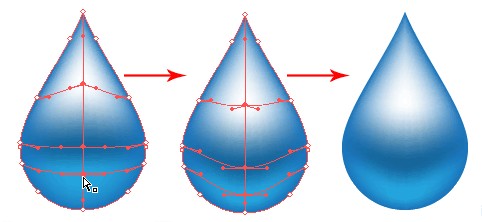 选择所有3网格点的方向选择工具,并将其拖动到模仿水滴的轮廓。和现实的水滴是完成了!