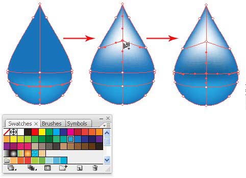 选择第一个网格点,选择一个浅蓝色水滴的基础。 下添加一个第三点,将其设置为白色。 最后,选择中间点和深蓝色。